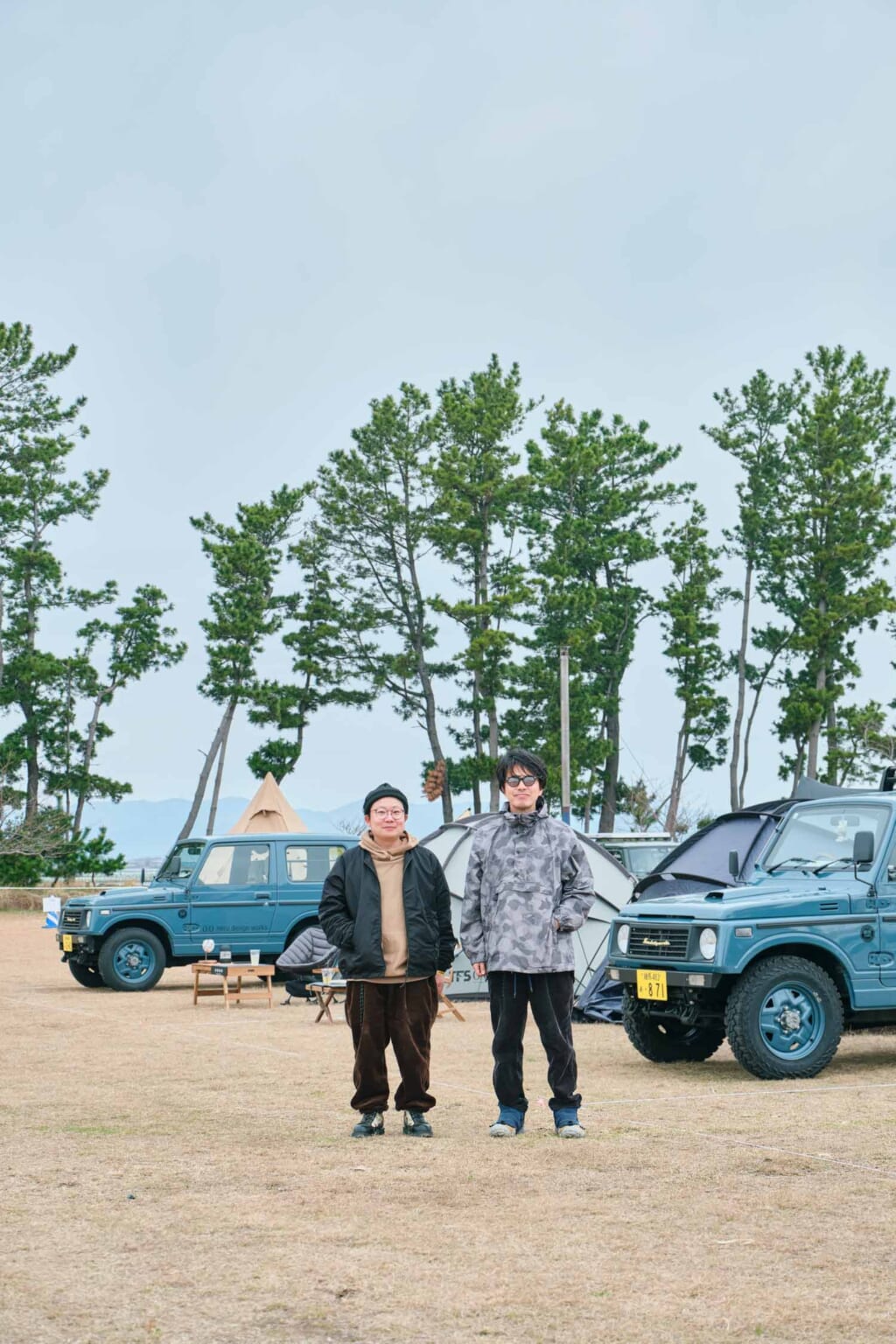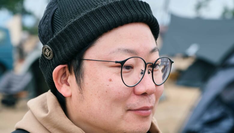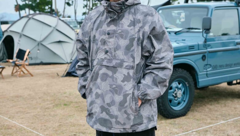 ネルデザインフリークのヤナイさんは、ネイビーのクルマやギアに合わせて、コーディネートも深いカラートーンに。総柄アノラックやアディダスのラッドランダーも同色で着こなす。
