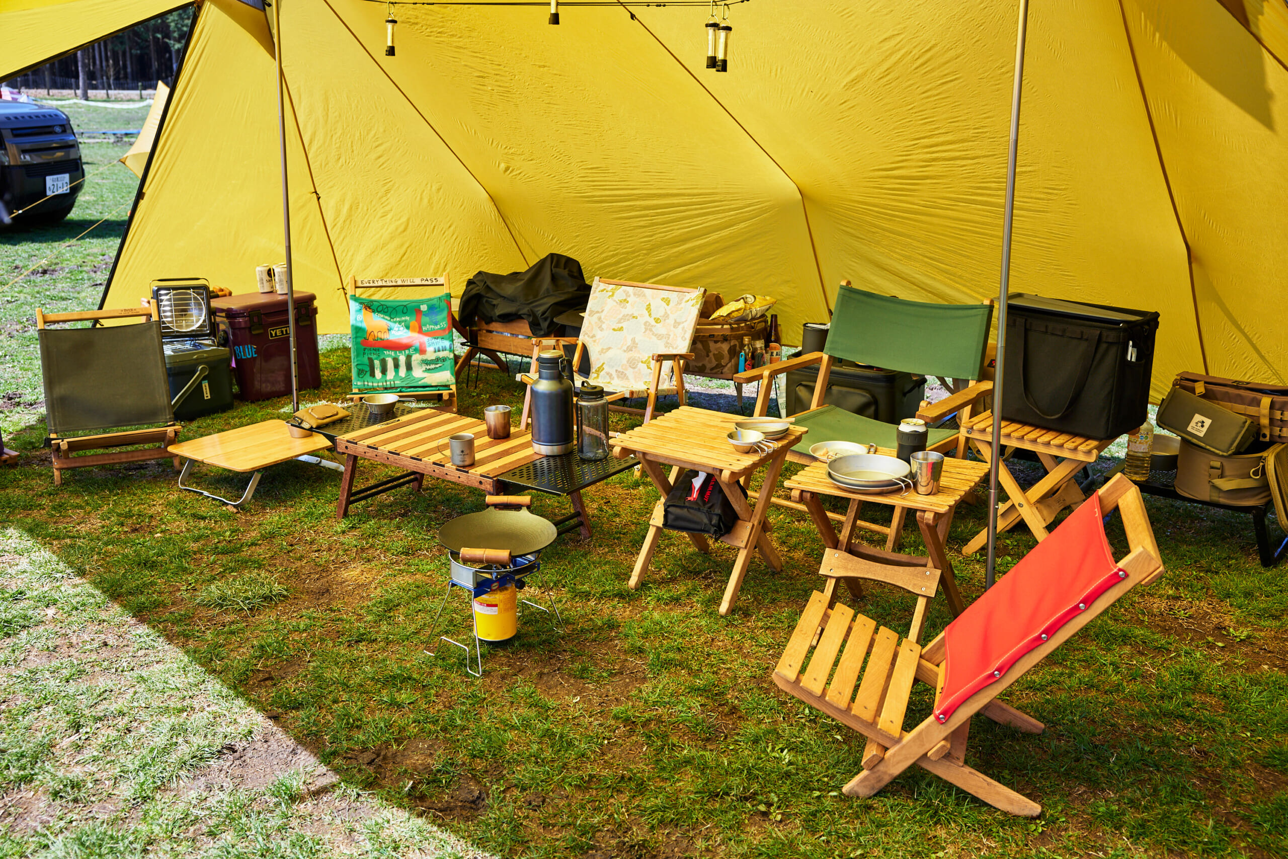 王道のアウトドアブランドを黄色で揃えた、グループキャンプ。(GO OUT JAMBOREE 2025) Shiyori Kawamura作成日2025.05.03更新日2025.05.03 チェアは特に往年のアメリカブランドがズラリと勢揃い。ブルーリッジチェアワークスやバイヤーオブメインのローチェア、ディレクターズチェアなど、今となってはめずらしいモデルも。 記事に戻る Shiyori Kawamura作成日2025.05.03更新日2025.05.03