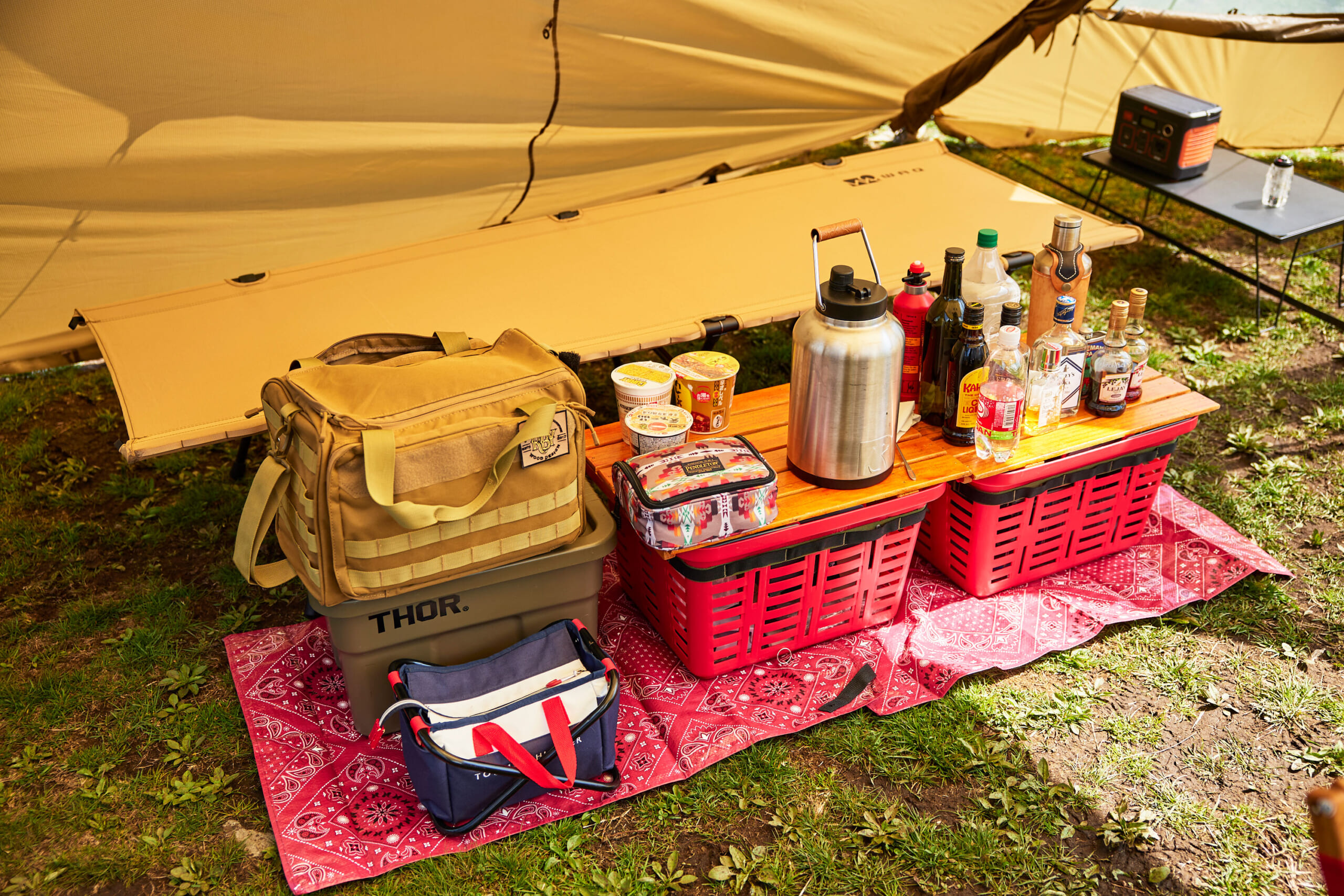 タクティカルカラーのサイトで、ミニマムながらも快適に過ごす。(GO OUT JAMBOREE 2025) Shiyori Kawamura作成日2025.05.03更新日2025.05.03 ホームセンターで購入したバスケットにD.I.Y.の天板を乗せドリンクコーナーを設置。トミーヒルフィガーのケースは、ゴルフ用のカートバッグを折り畳みチェアに付けて小物入れに転用。 記事に戻る Shiyori Kawamura作成日2025.05.03更新日2025.05.03