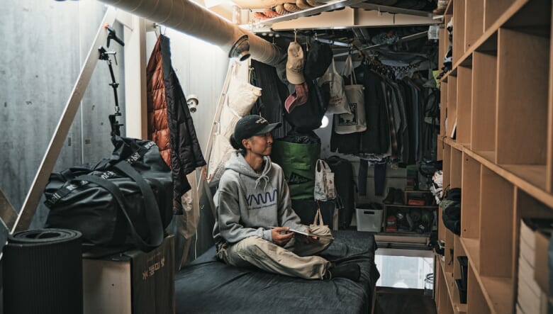 シェアハウスとはひと味違うカタチで、知人の自宅兼事務所を間借りする丸山さん。過去にヨーロッパでの長期縦走やオーストラリアでのサーフィンなど海外で外遊びを楽しむ生活を送っていたが、コロナ禍で帰国せざるを得ない状況に。