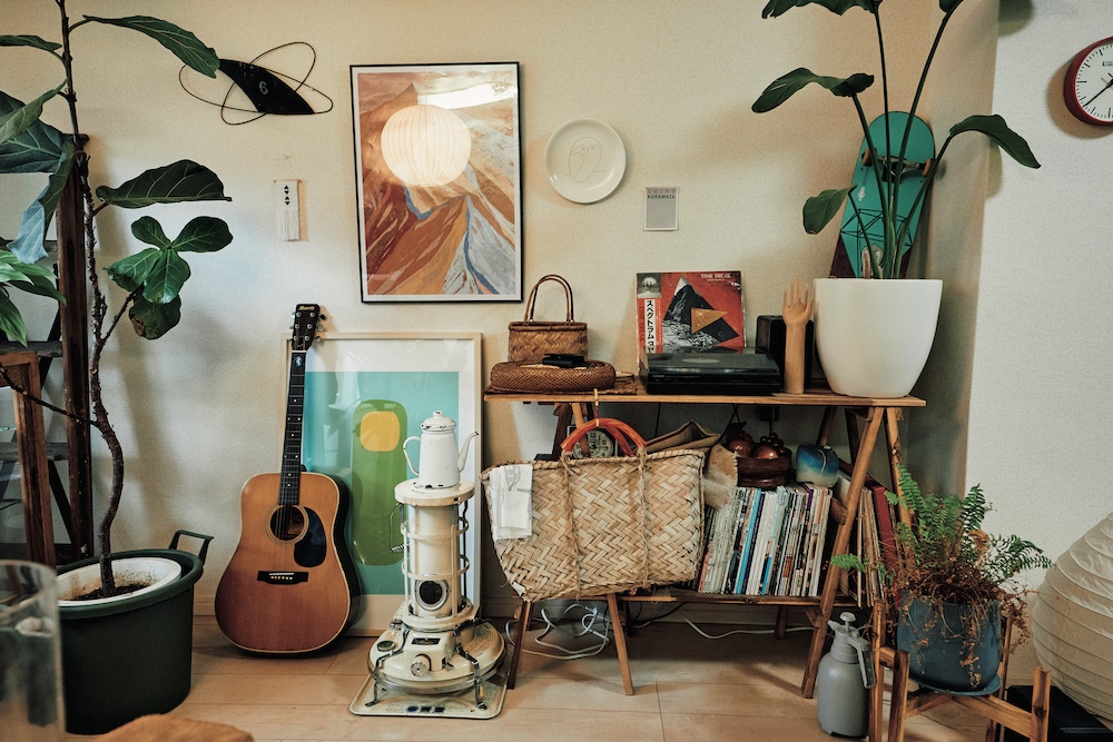 萱沼伸義(インテリアスタイリスト) GO OUT編集部作成日2025.05.26更新日2025.05.26 アコースティックギターやアート作品、レコードプレイヤーなどが置かれたディスプレイスペース。「趣味のモノとシゴトで集めた小物や雑貨が混ざっていて、あまり統一感がないです(笑)」 記事に戻る GO OUT編集部作成日2025.05.26更新日2025.05.26