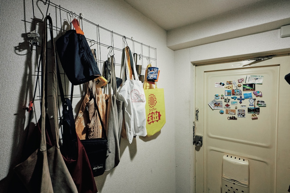 萱沼伸義(インテリアスタイリスト) GO OUT編集部作成日2025.05.26更新日2025.05.26 部屋扉の先に位置する玄関。その脇に設置された網棚は自作のアイデア品。「コンクリートの基礎に使う建材、ライヤーメッシュを、バッグや小物をかけるラックにアレンジしました」。 記事に戻る GO OUT編集部作成日2025.05.26更新日2025.05.26