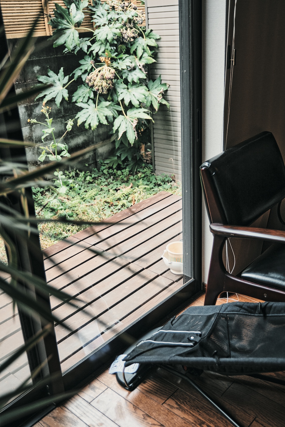 増田信希(PWA デザイナー) GO OUT編集部作成日2025.05.26更新日2025.05.26 縁側と中庭。リビングへと陽射しが差し込み、気持ちよく風が抜ける、この場所も物件選びの決め手となったひとつ。夏場に友人が来たときには、中庭で水浴びして涼んだり、植物の手入れをするのにも縁側を活用しているそう。 記事に戻る GO OUT編集部作成日2025.05.26更新日2025.05.26