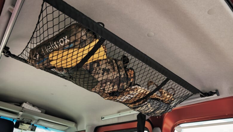 「いろんな軽に乗ってきたけど、車内空間はアトレーが1番快適かも。収納力や機能性にも満足しているけど、なによりもサイズがちょうどいい。無駄に大きすぎず、狭過ぎない絶妙なカンジで。昔からコンパクトな山岳テントで寝るのが好きだから、車中泊のスペースもそのほうが落ち着くのかも(笑)」。