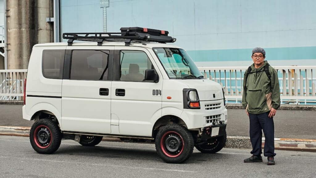 ルーフラックなどの取り付けからホイールの塗装までジブンでできるカスタムはDIYで仕上げた。「車両は安く買えたんですが、改造費を倍くらい使っちゃいました(笑)」。