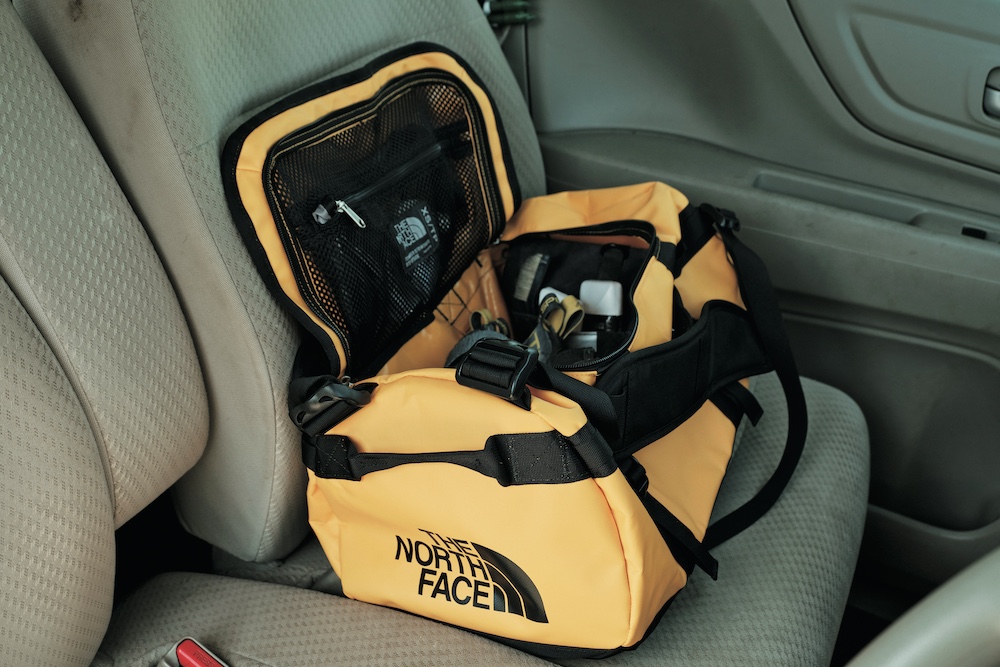 ザ・ノース・フェイスのボストンバッグには、ボルダリングジムのアイテムを収納。