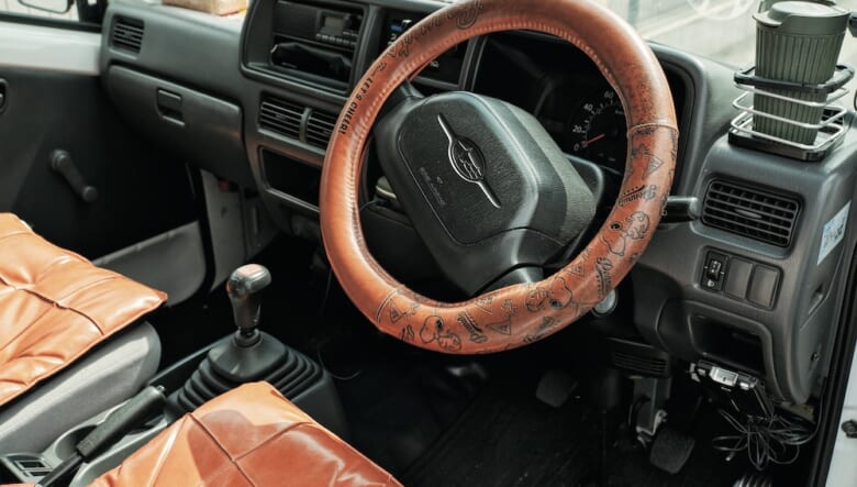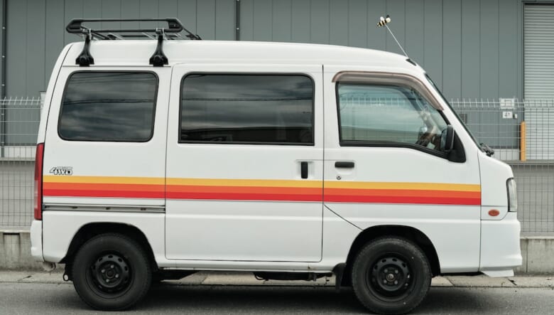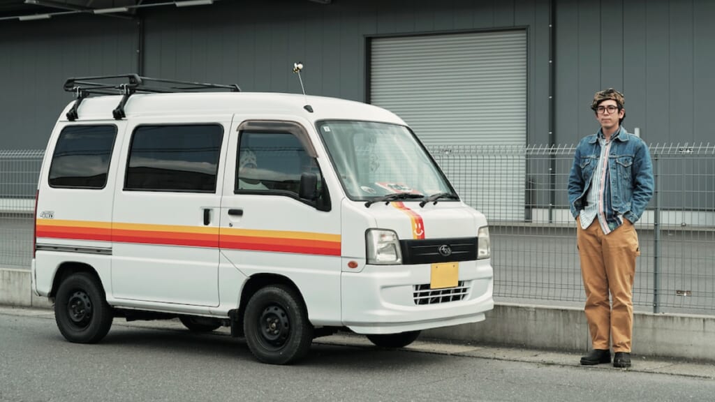 「コンパクトカーをカスタムするのが好き」という渡部さんが、パジェロミニから乗り換えた1台が、スバルのサンバーバン。「この年代の顔が好みで、ピンポイントで探しました。ルックスもお気に入りだけど、サンバーはエンジンが後ろにあるRR車だから“農道のポルシェ”って呼ばれてるんです(笑)。そんなユニークなところにも惹かれました」。