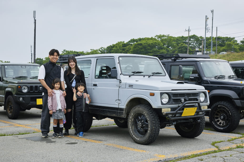 FJクルーザーから乗り換え、友人から購入したJA11に乗るファミリー。錆止め塗装された状態で譲り受けたそうで、板バネはアピオのやわらちゃん、フロントバンパーはシシガリ風+プレートに変更し、ネットで購入したフォグランプを取り付け。