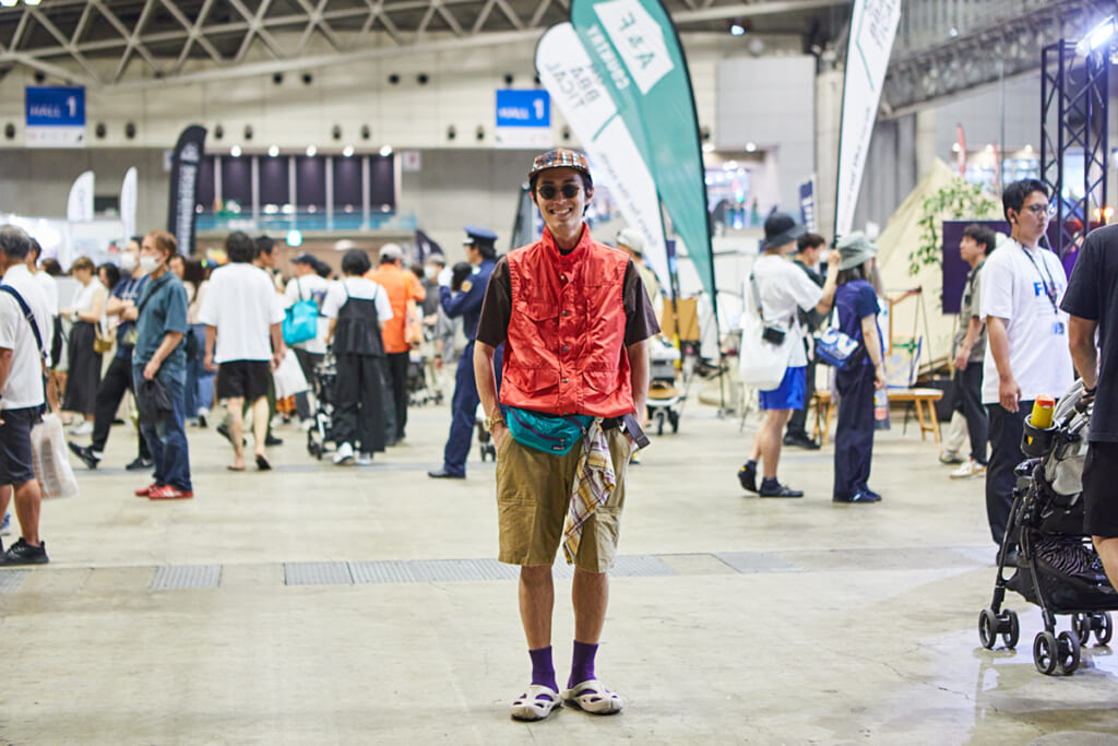 色数が多いのに、ゴチャつきを感じさせず、クラシックながらも、古着ではなく新作アイテムでコーディネート。荷物はパタゴニアのポーチに集約し、ベストやパンツはスッキリとさせる気配りが行き届く。