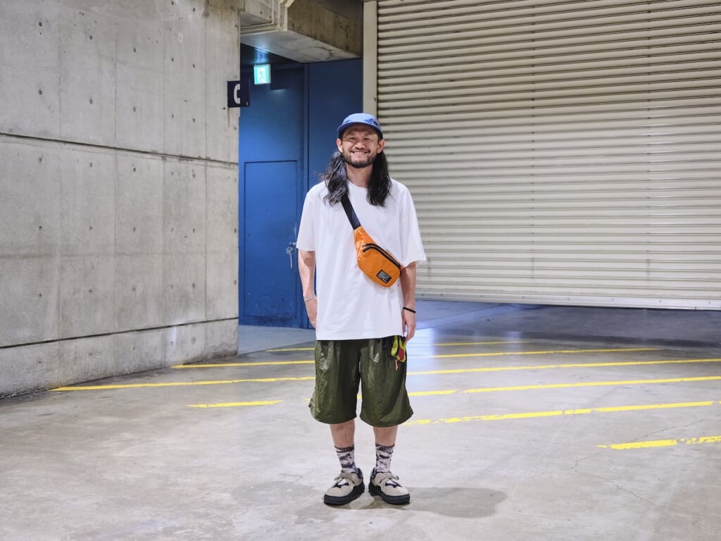 軽やかな色モノを散りばめつつ、ショーツもシューズもキャップもバッグも、さまざまな韓国発ブランドでコーディネート。5Lサイズの白Tは、なんとしまむらで、アンダー1000円だったとか。