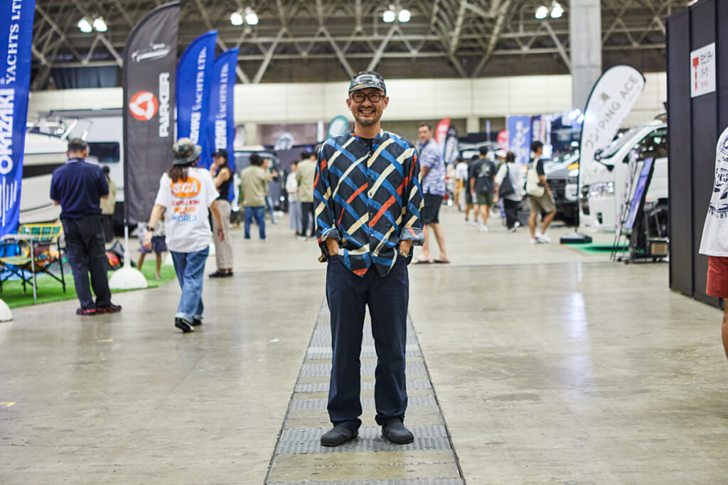 リゾートチックな柄が特徴のバナナタイムのシャツは、雑に袖捲りしてこなれた雰囲気に。着こなしはシンプルだが、サンダルはガリビエ、キャップはシモロと、ニッチなブランド選びが服好きを唸らせる。