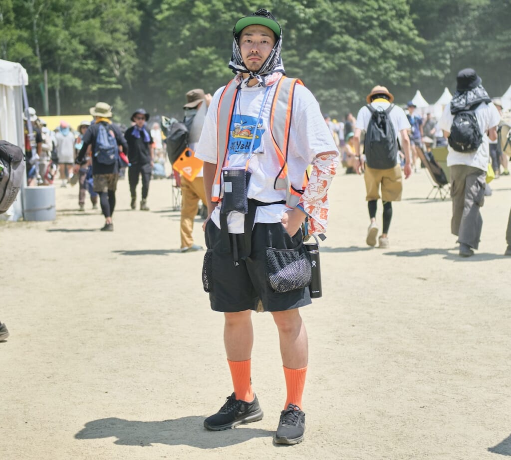 福岡で活動するアーティストやショップ、沖賢一やToyameg、 HEY&HOなどのアイテムを散りばめた着こなし。ローカルならではの個性的なアイテムは会話のネタにもなるそう。