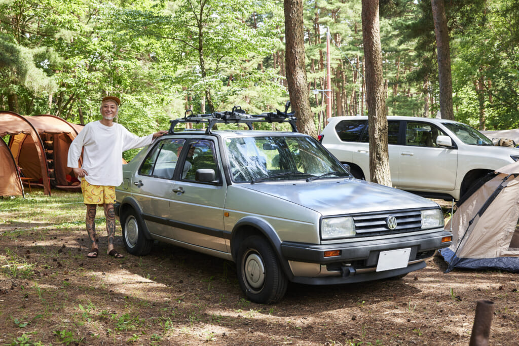 ジェッタの2代目にこだわり、昨年やっと巡り会えたオーナー。走行距離は10万kmを超えたものの、調子はいいとか。見た目以上の積載量があり、スーリーのバイクマウントを装備し、外遊びで大活躍中。ベースのルーフキャリアは純正品を探した。
