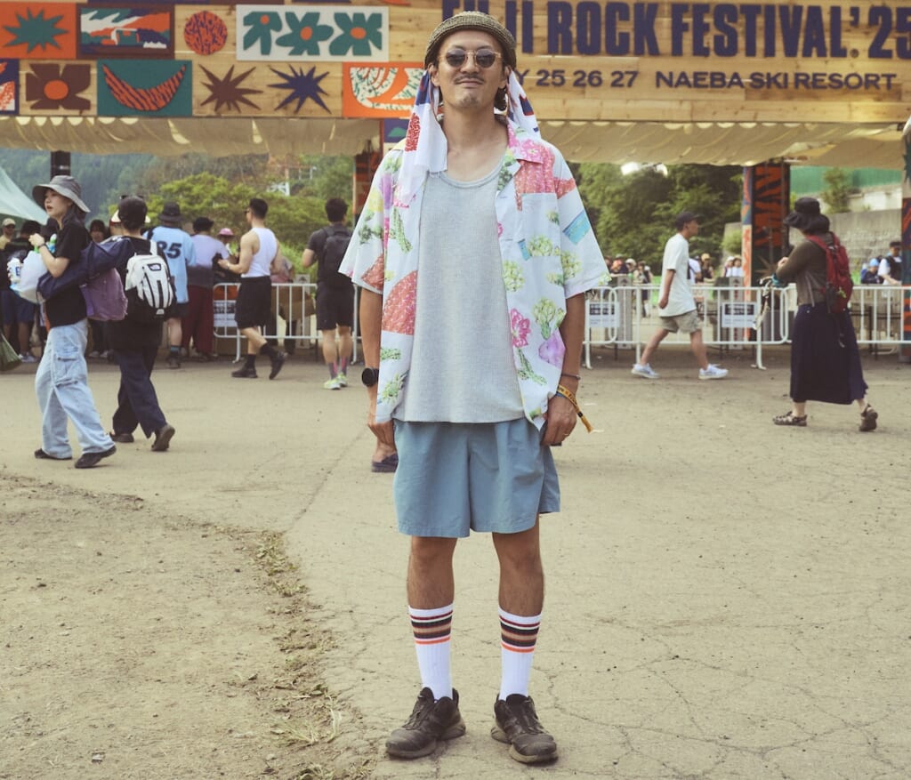 柄シャツ投入でリゾート気分演出。-FUJI ROCK FESTIVAL ’25-