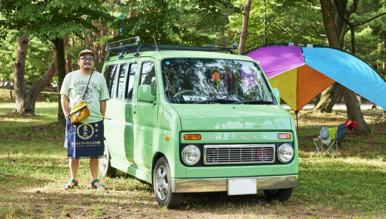 ダムドのボディキット、リトルDトラディショナルに、宮城県にあるショップフリードレスのオリジナルカラーでオールペン。着るMA-1がテーマで、どんなキャンプ場でもサマになるルックスに、内装はオレンジが基調となり、運転中も楽しめるそう。