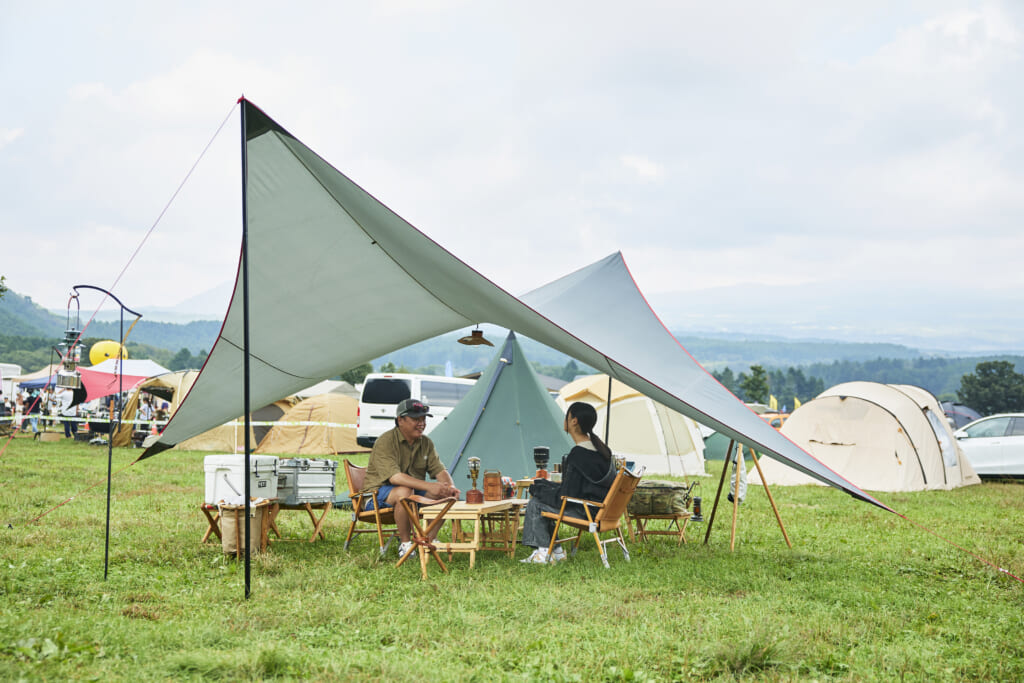 白木のウッドギアを中心に、シンプルにまとまったコンパクトなテントサイトかと思いきや、デイナデザインのテントやオプティマスのバーナーといった、玄人も垂涎もののギアをさり気なく配置したepitaphさん。小物収納のコンテナなども、軍モノだったりアースカラーだったりと装飾が施されていないソリッドなデザインが中心。こうしてシンプルを貫いたことで、洗練された雰囲気が出来上がった。