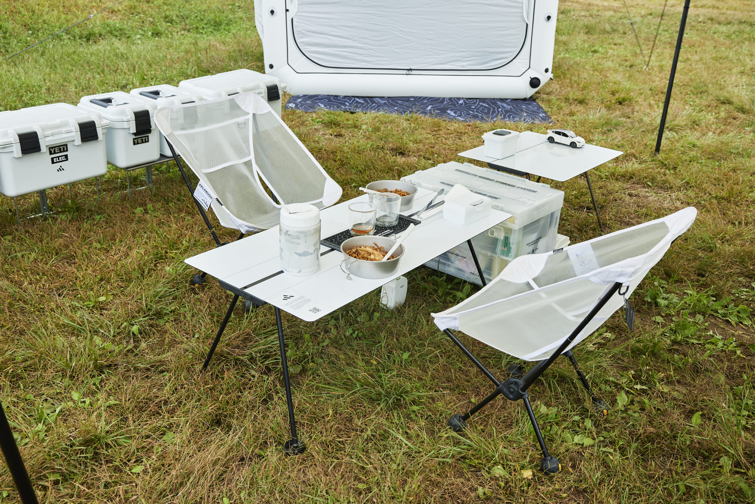 どこを見てもオールホワイト!!ユニーク&アイデアギアの宝庫。(GO OUT CAMP vol.21) Shiyori Kawamura作成日2025.11.01更新日2025.11.01 テーブルはDIYでカッティングシートを貼り、天板を白くしたそう。またチェアはヘリノックスの脚に韓国のインスタグラマーが展開するガレージブランドへオーダーしたシートを使用した。 記事に戻る Shiyori Kawamura作成日2025.11.01更新日2025.11.01