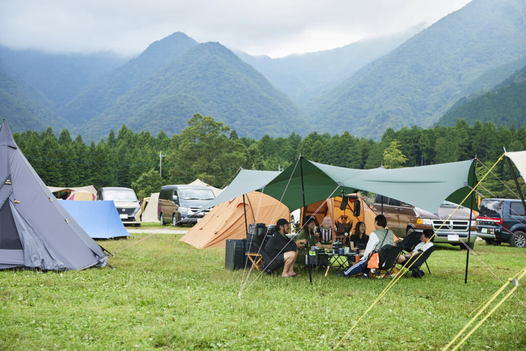 ヒルバーグのタープを中心に置き、周りを囲むようにそれぞれのテントを配置したグルキャンサイト。各自のギアを持ち込むと雑多な雰囲気になりがちなサイトでも、アイテムを黒で揃えることでごちゃついた感を払拭。夜の宴会に必須の冷蔵庫だけでなく、ポータブルバッテリーで使える炊飯器まで持参し、夜のキャンプ飯も完璧。スタイリッシュながらも便利で高機能なグルキャンサイトはぜひ真似したい。