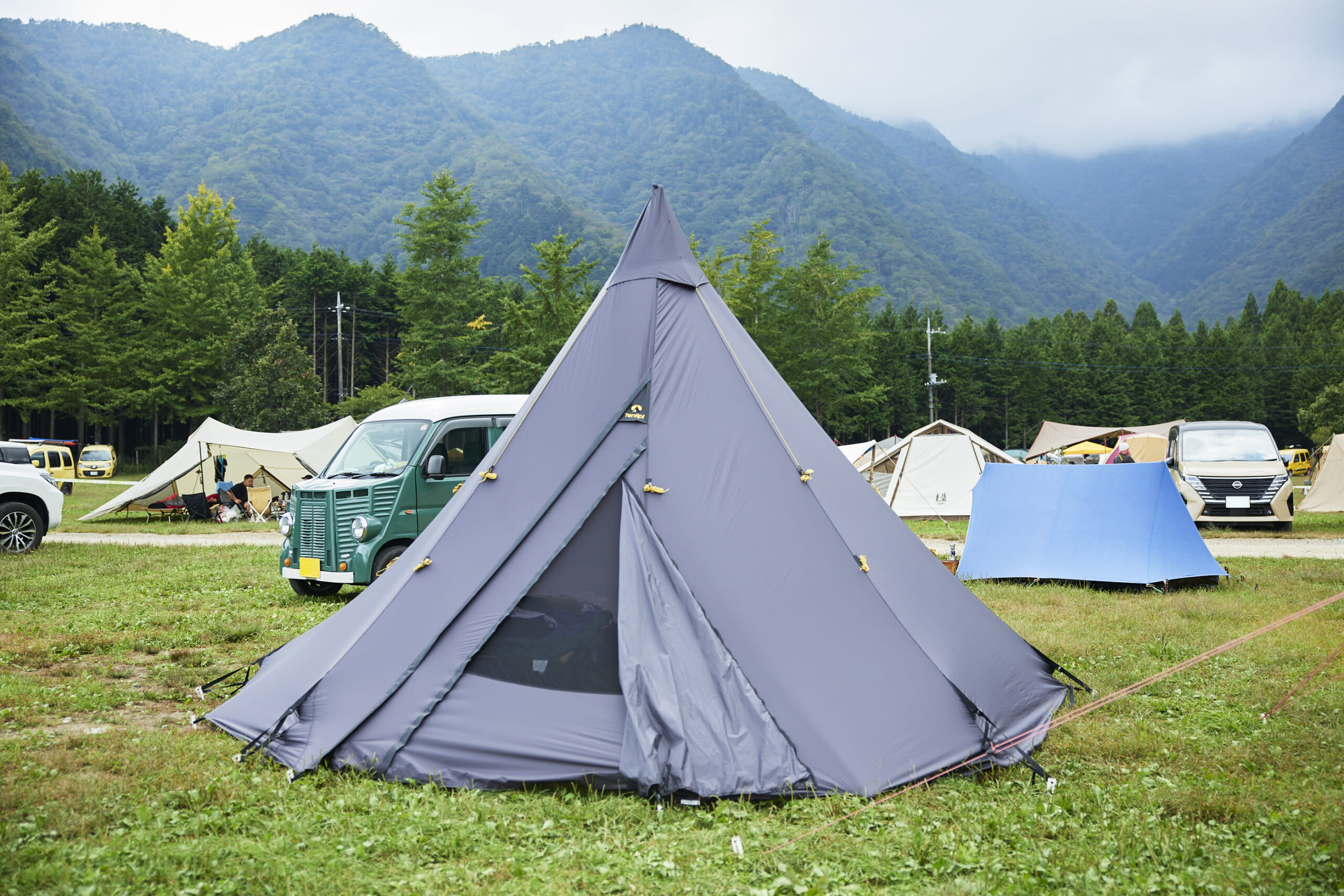 寒さにも強いコットン素材のテンティピ。薪ストーブもインストールできるため、これからの季節に活躍してくれる。