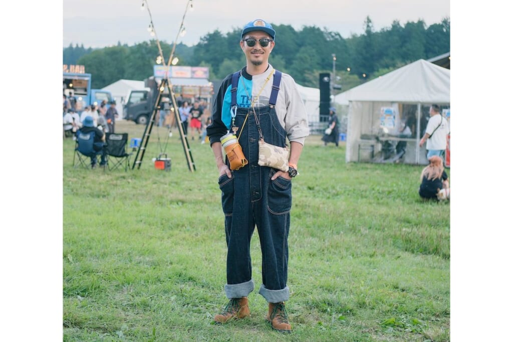 ワーク要素の強いオーバーオールもゴーヘンプの1品を選ぶことでナチュラルに。そこにクレイジーパターンのスウェットや発色のいいコーデュロイのキャップを合わせて、ポップな着こなしにまとめた。