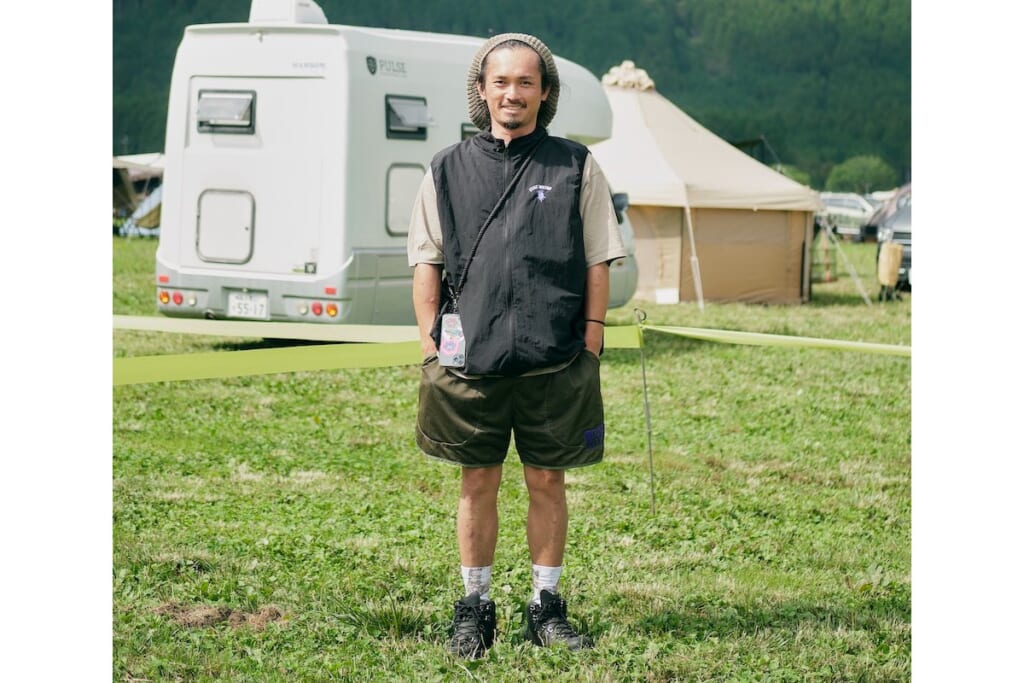 ネイタルデザインのショーツやダナーのブーツなど、ゴーアウトキャンプでもお馴染みのブランドでスタイリングを構築。そこにレゲエ要素のあるタムニットを加えて、フェス感を醸し出した。