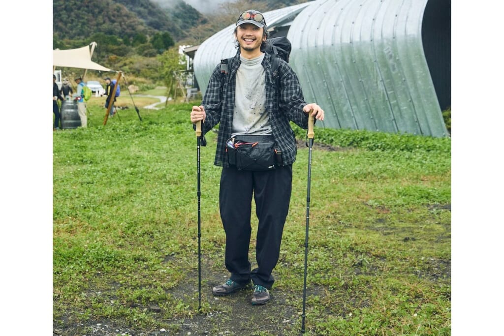 ハイキングということで旬な山ブランドを取り入れつつ、モノトーンでまとめた。サイズ感はあえてユルめにすることで、肩肘を張らない雰囲気となり、ラフにイベントを楽しむオシャレ感を演出した。