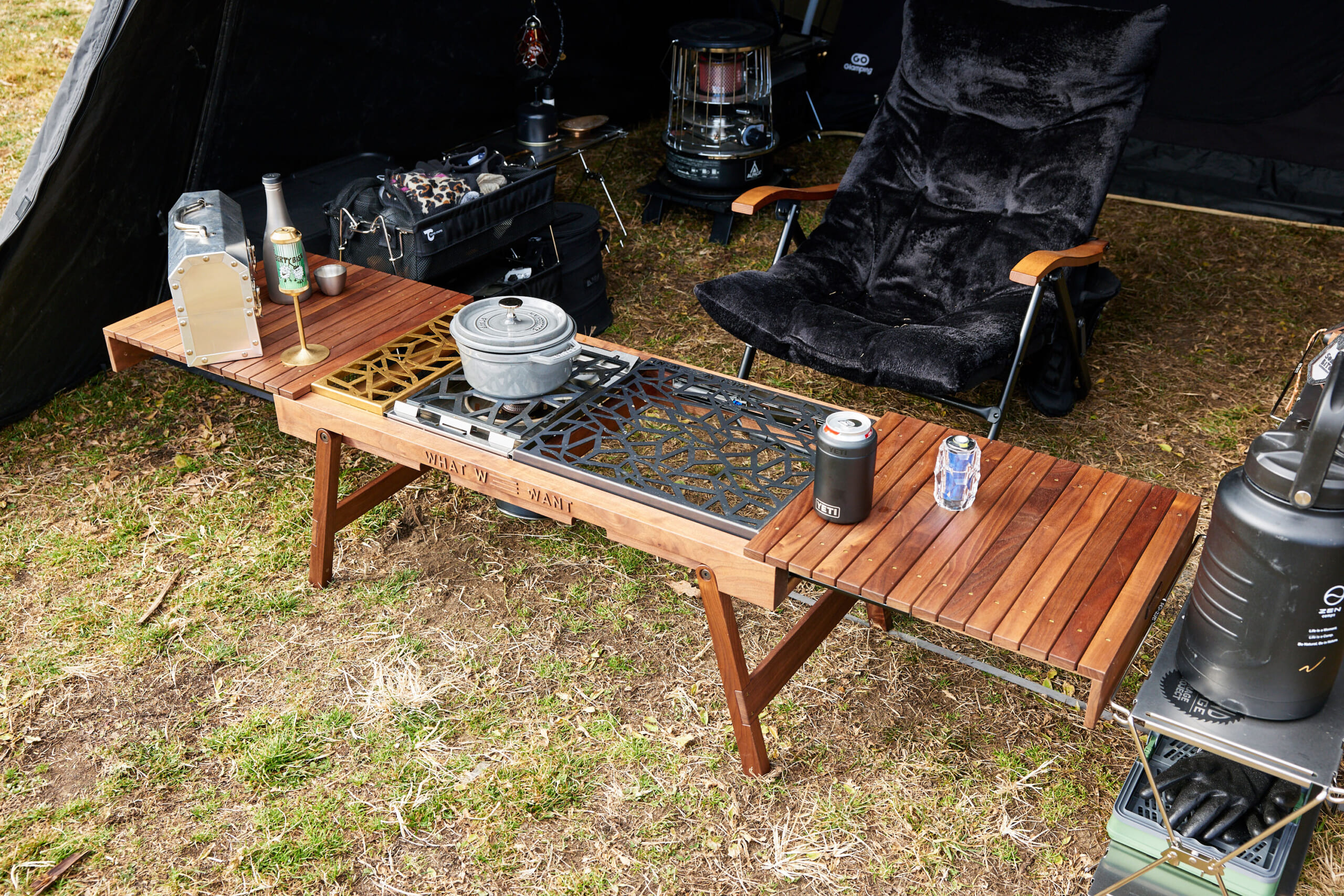 テントからぬくぬく富士山鑑賞。機能駆使のカンガルースタイル。(GO OUT CAMP 冬 2025) Shiyori Kawamura作成日2025.12.26更新日2025.12.26 テーブルはワットウィーウォントをチョイス。天板が左右にスライドするため、今回はスノーピークのフラットバーナーを仕込みキッチンとしても機能。 記事に戻る Shiyori Kawamura作成日2025.12.26更新日2025.12.26