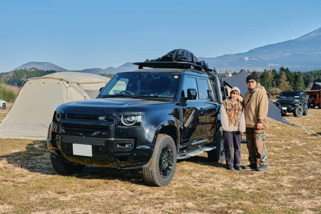3列シート8人乗りの広々とした車内空間が魅力のディフェンダー130に、タフ&ラグジュアリーを体現する収納型ラダー付きのルーフラックやサイドステップなど純正オプションを装着。「荷物をしっかり積載したかったので、ラゲッジの広さが決め手でした」。