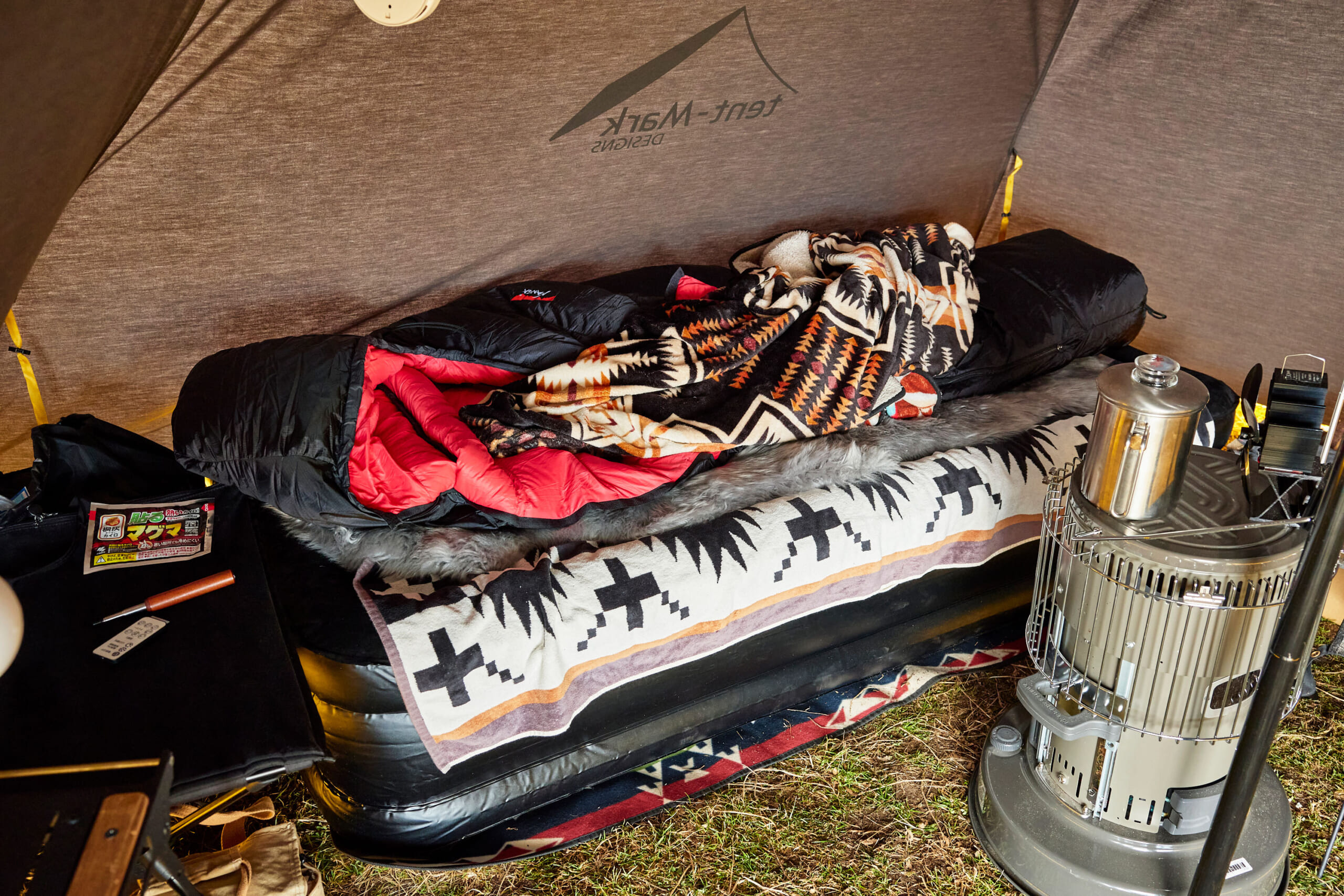 テントのイエロー配色が目印!! オマージュDIYギアにもご注目。(GO OUT CAMP 冬 2025) Shiyori Kawamura作成日2025.12.26更新日2025.12.26 アマゾンで購入したエアベッドはコスパの良さからチョイス。地面にはラグを敷き、底冷え対策もバッチリ。もちろん設営は自動ポンプ付きでラクラク。 記事に戻る Shiyori Kawamura作成日2025.12.26更新日2025.12.26