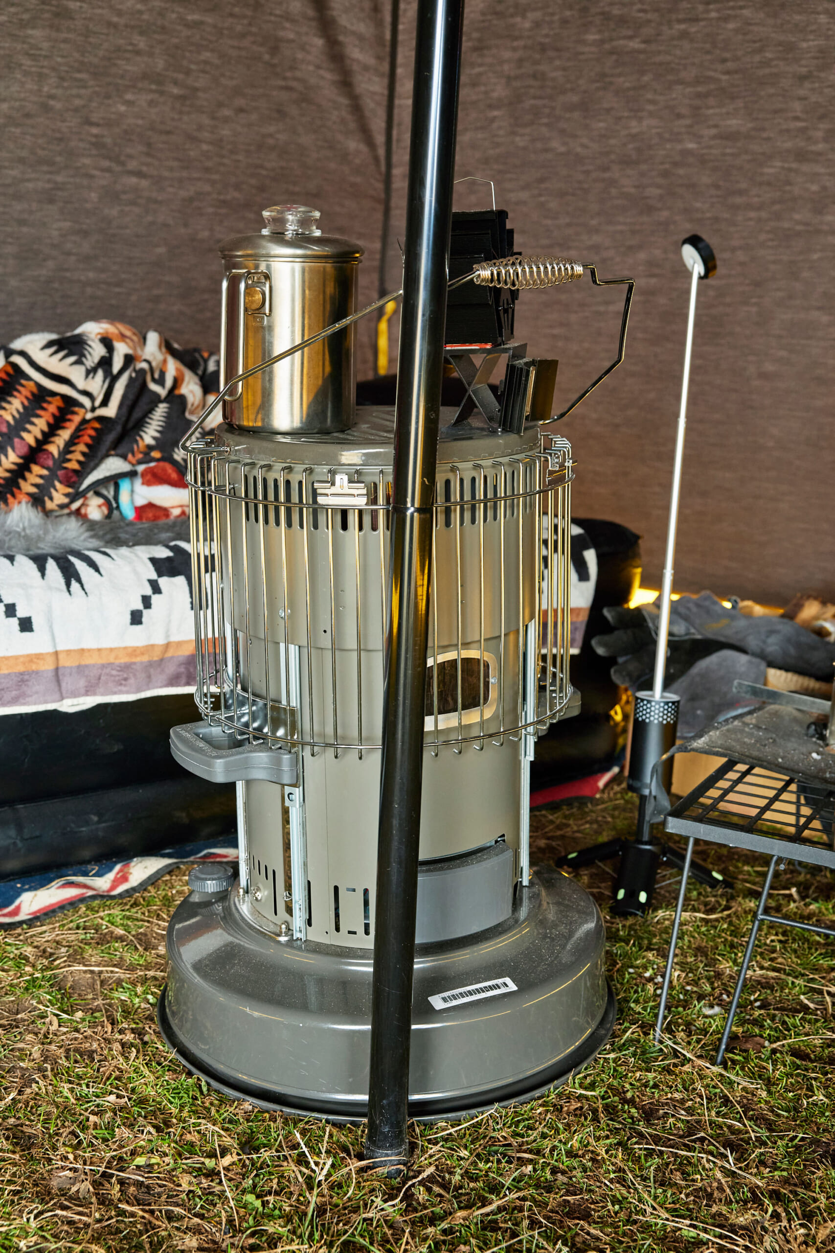 テントのイエロー配色が目印!! オマージュDIYギアにもご注目。(GO OUT CAMP 冬 2025) Shiyori Kawamura作成日2025.12.26更新日2025.12.26 石油ストーブはパセコのキャンプ25S。天板には熱で回転するタイプのファンを置き、室内全体に暖かい空気を循環させている。 記事に戻る Shiyori Kawamura作成日2025.12.26更新日2025.12.26