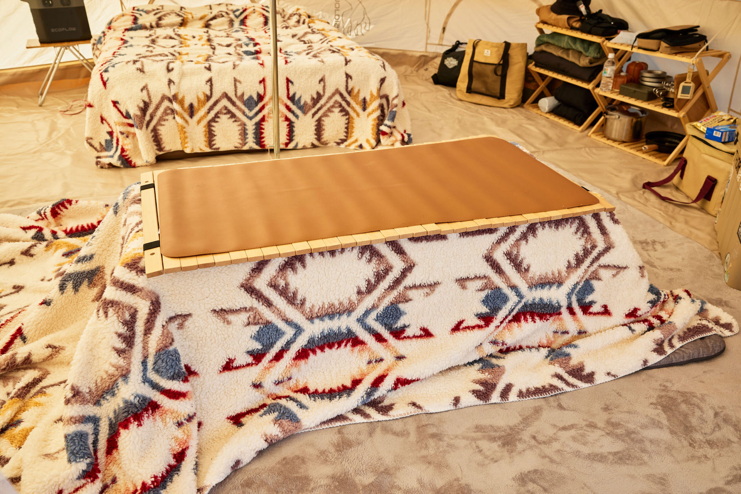 こたつまで完備のアイデア満載!!真冬の万全おこもりスタイル。(GO OUT CAMP 冬 2025) Shiyori Kawamura作成日2025.12.26更新日2025.12.26 お手製のこたつは、ハイランダーのロールトップテーブルに、コストコで購入したペンドルトンのブランケットを挟んだ。寒さが増してくると中に湯たんぽを入れて暖める。 記事に戻る Shiyori Kawamura作成日2025.12.26更新日2025.12.26