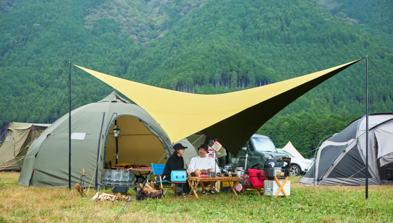 昼夜の気温変化で使い分けできる、王道のセパレート型レイアウト。(GO OUT CAMP vol.21)