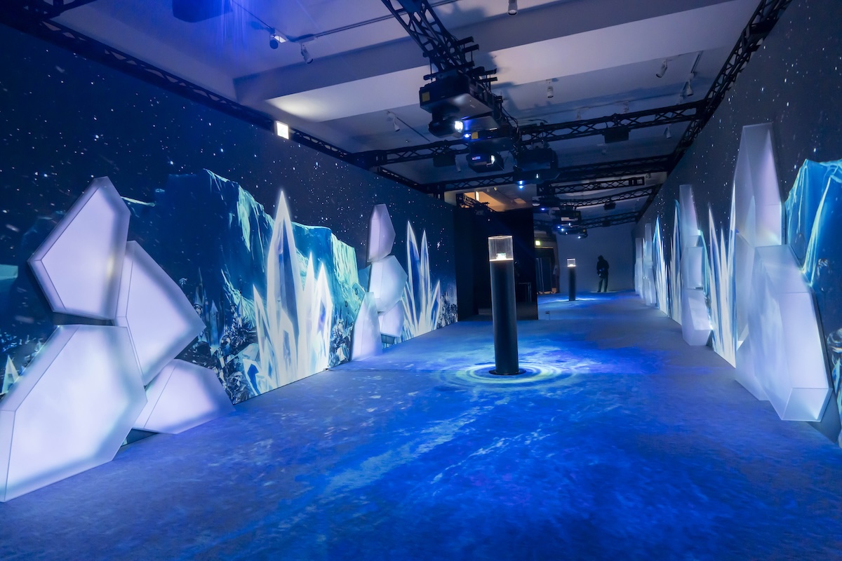 会場内にはフォトブースも常設されており、中に入って撮影すると、まるで自分自身が氷の中に閉じ込められたような一枚に仕上がる演出も用意されている。