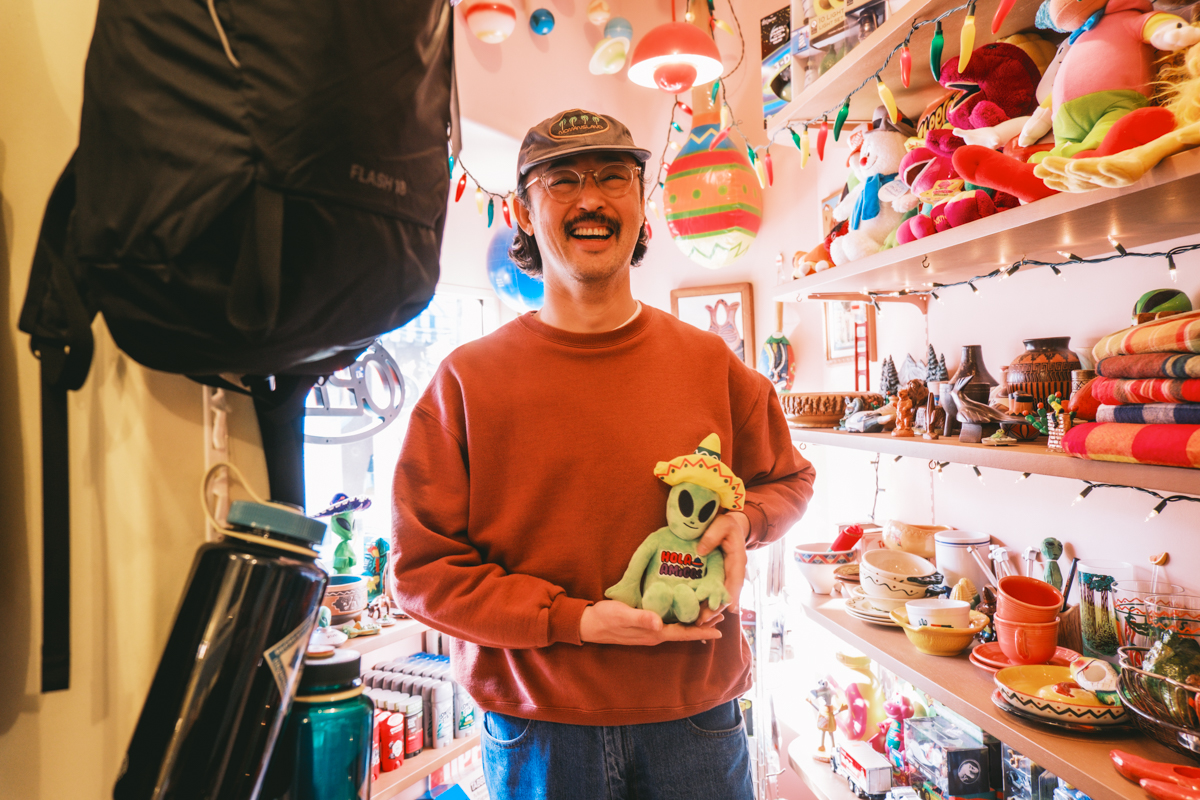 店内には、その“瓦”の小部屋を中心に、アメリカで買い付けた雑貨や古着、オリジナルアイテムが所狭しと並んでいる。内装と商品が一体になって、独特の空気感を生んでいるのもこの店ならではだ。