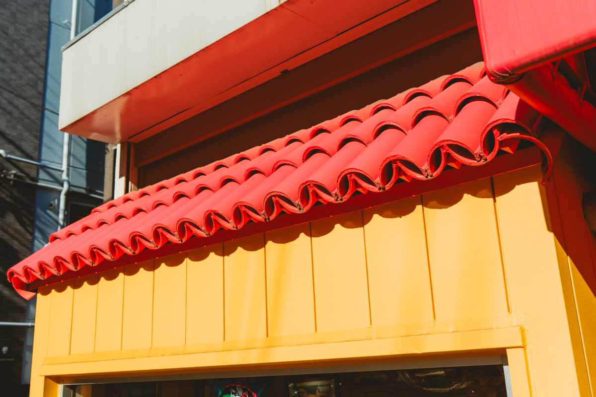 外装に使われている“瓦”モチーフ。ショップステッカーにも登場するSUNDAYS BESTのアイコン。
