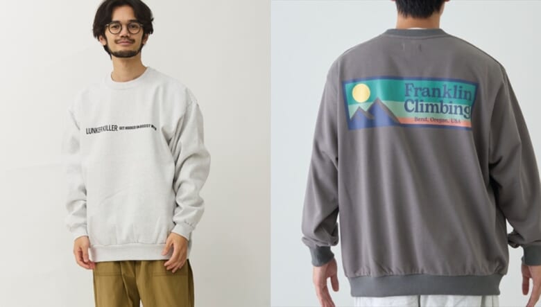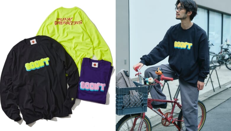 グラフィックとステッチワークで遊び心を主張するパンクドランカーズのスタイリング。